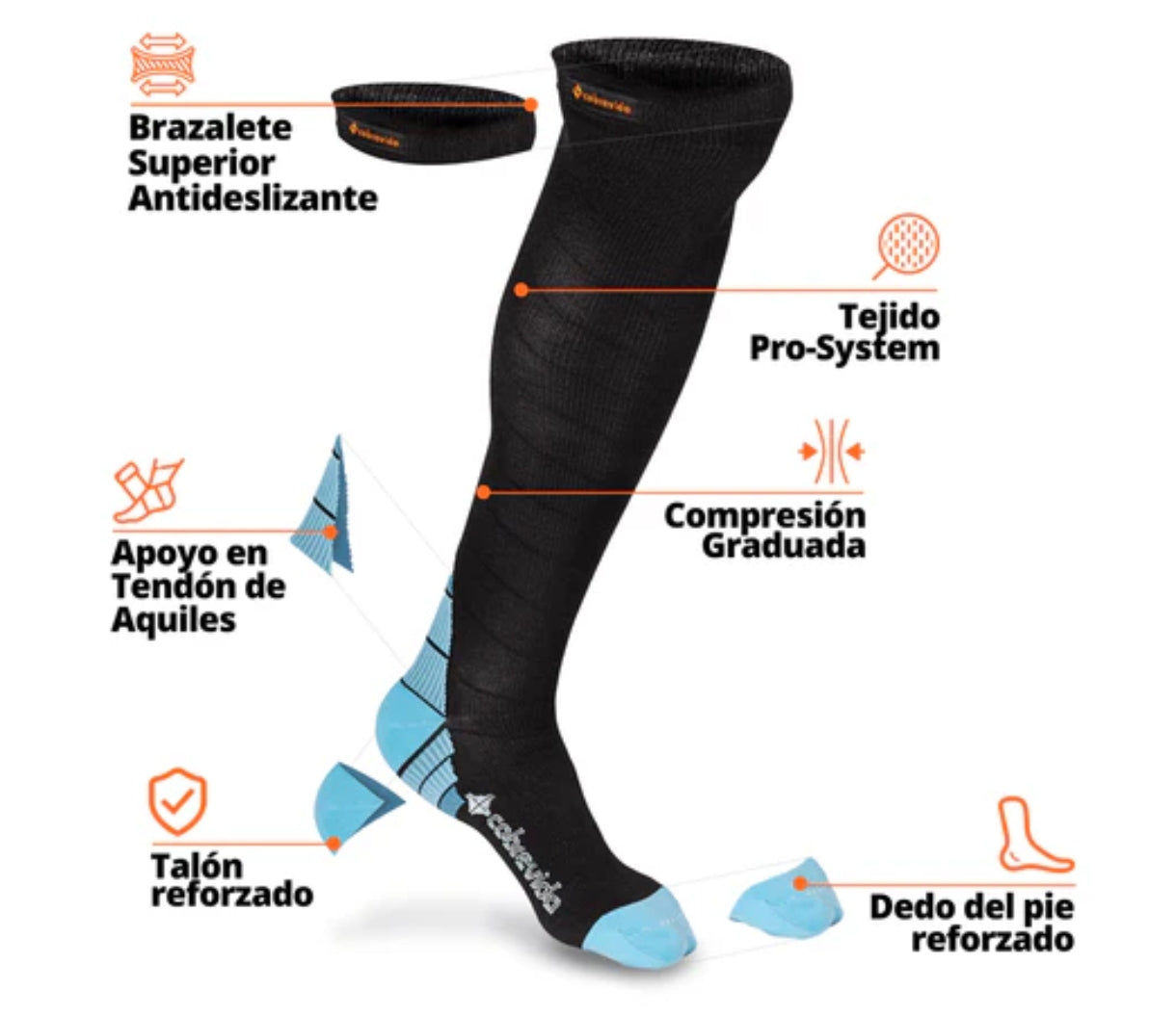 Ayudan a mejorar la circulación sanguínea, reducir la fatiga y la hinchazón en pies y piernas, aliviando molestias de estar mucho tiempo de pie o sentado