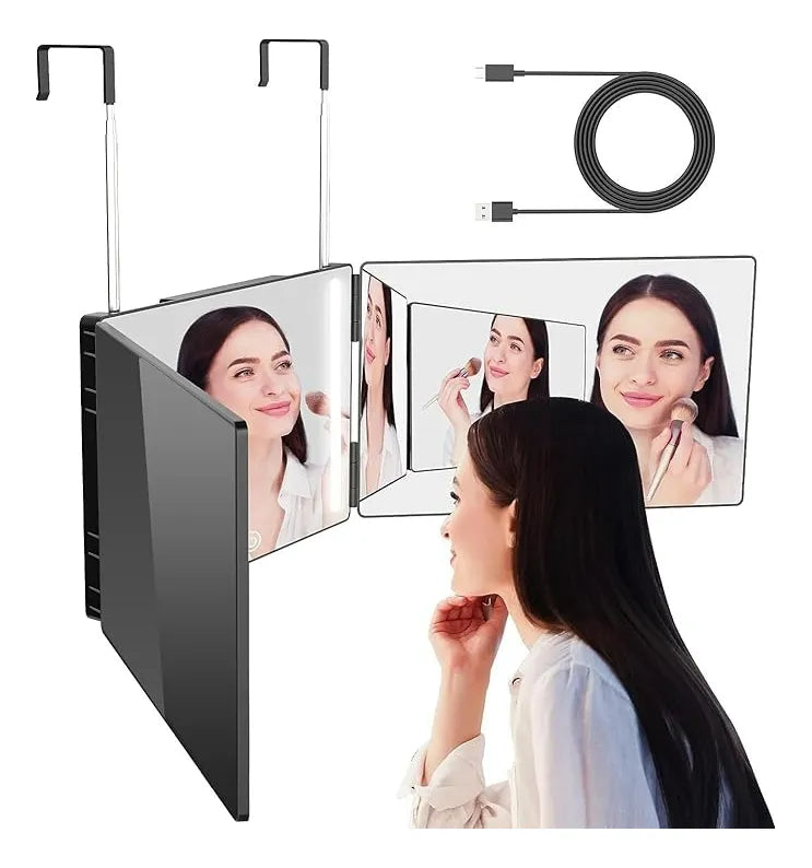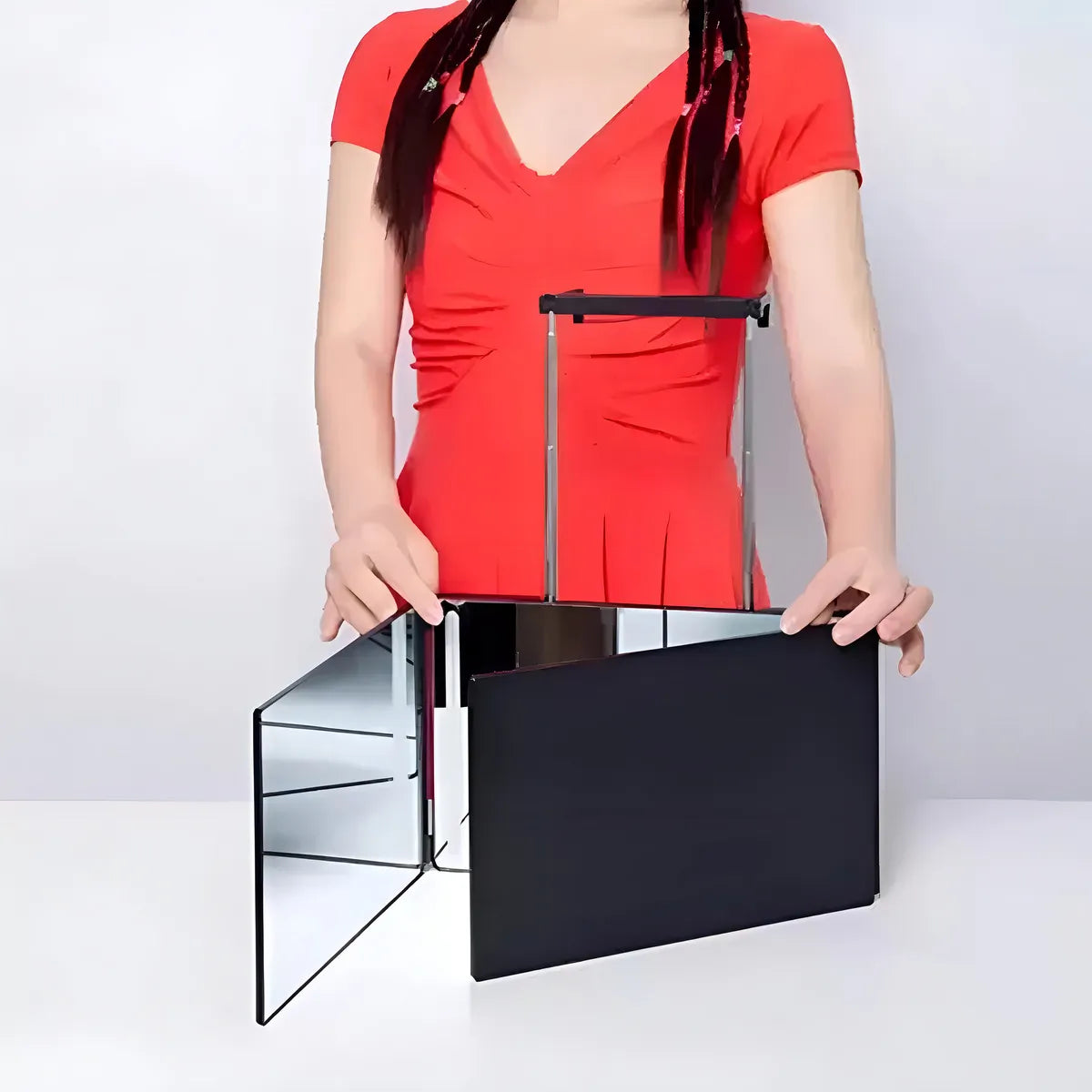 El Espejo de 3 Vías de Corte de Pelo es la herramienta ideal para quienes buscan mantener un look impecable sin depender de un barbero. Con su diseño plegable y ajustable, te permite ver todos los ángulos de tu cabeza y nuca con total claridad, logrando cortes y arreglos precisos desde casa con resultados profesionales