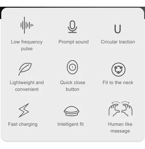Diseñado para brindar alivio inmediato y confort durante todo el día, el Masajeador Eléctrico de Cuello combina tecnología avanzada con un diseño ergonómico que se adapta perfectamente a la forma de tu cuello para una experiencia de relajación profesional en casa o en la oficina