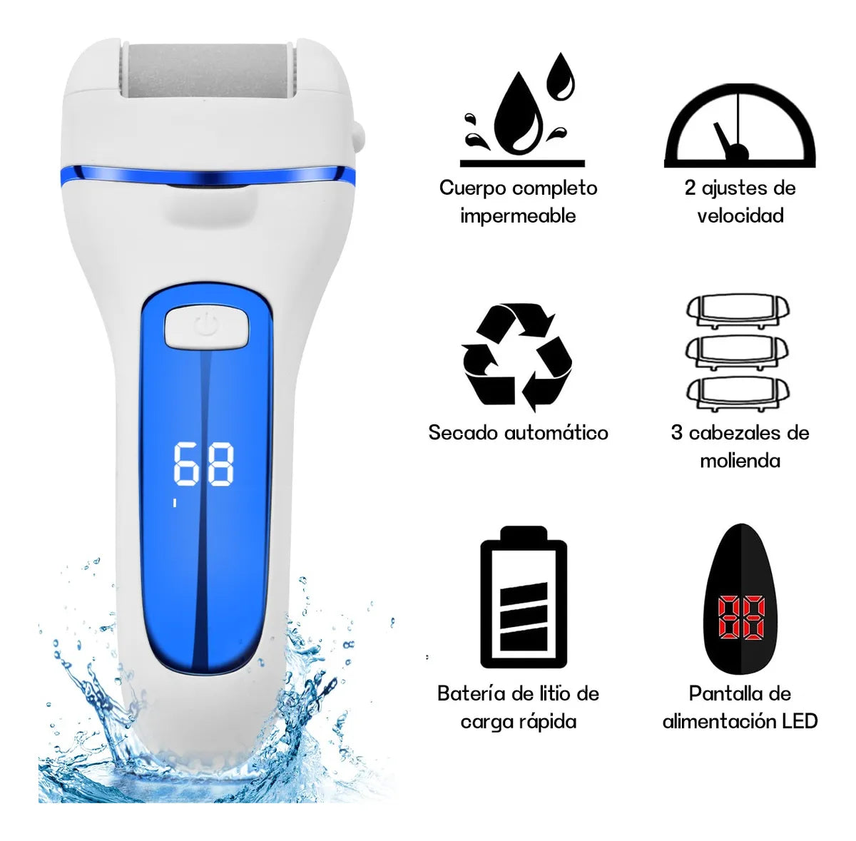 A diferencia de las limas manuales o piedras pómez, su sistema eléctrico garantiza una exfoliación rápida, segura y uniforme. Es recargable, portátil y ergonómico, perfecto para usar en casa o llevar de viaje. Ofrece resultados profesionales sin necesidad de acudir a un salón