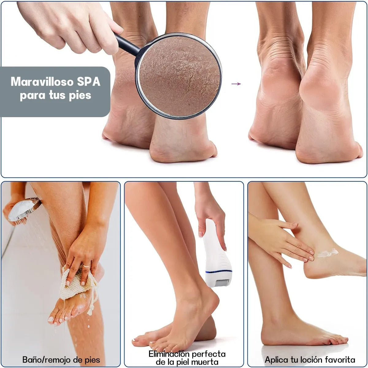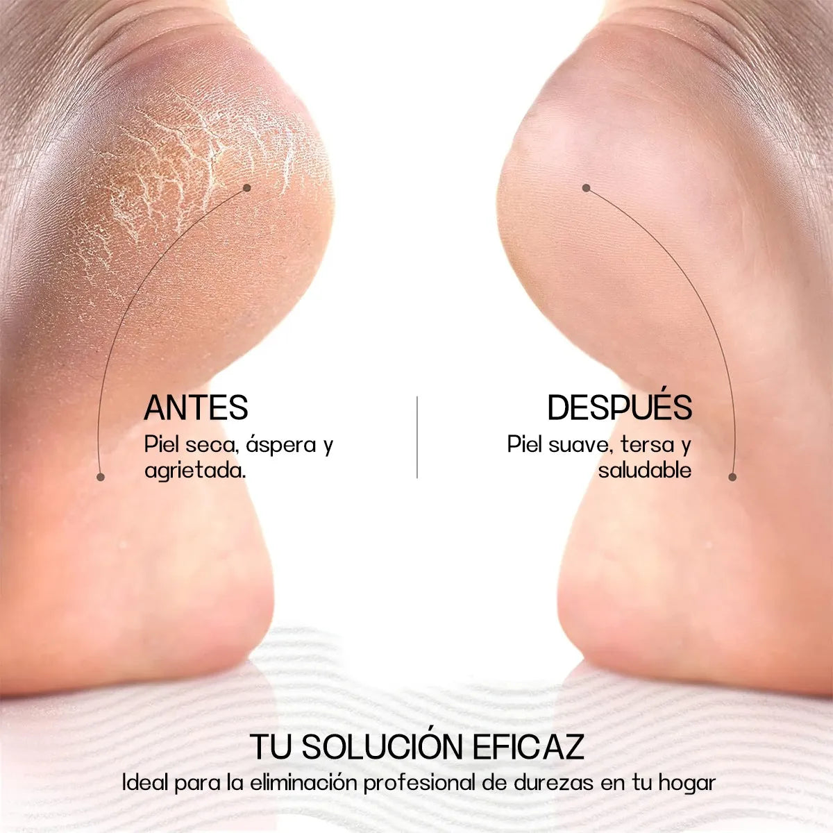 Elimina callos, durezas y piel reseca causados por el uso prolongado de calzado o la falta de hidratación. Recupera la suavidad natural de tus pies y mejora su apariencia sin esfuerzo ni dolor