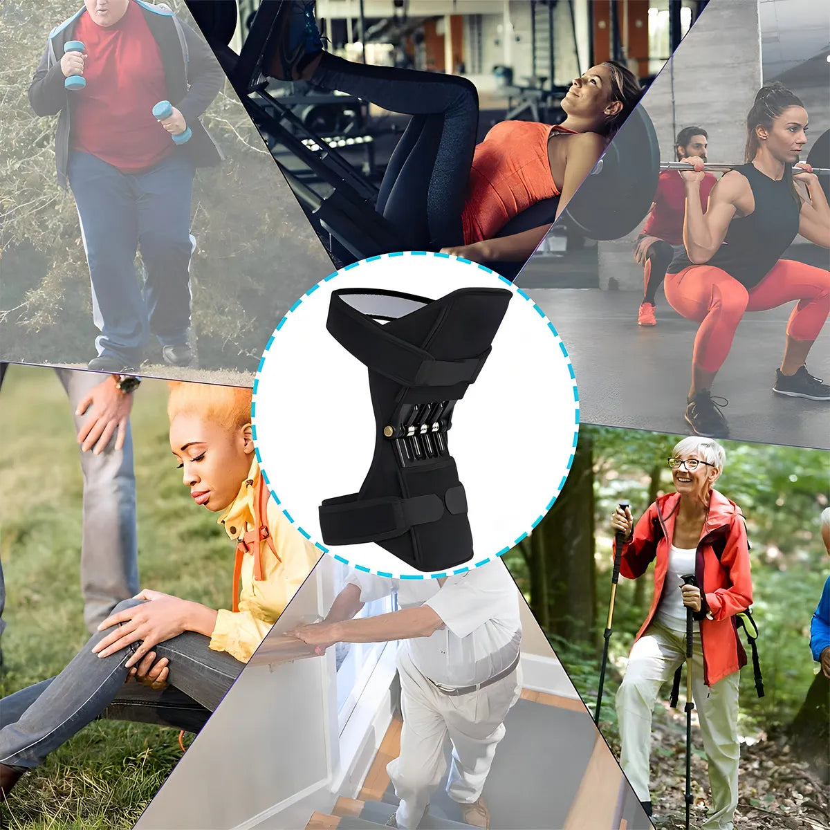 Coloca el resorte alrededor de la rodilla ajustando la presión para un soporte firme pero cómodo se puede usar tanto en reposo como durante entrenamientos o caminatas