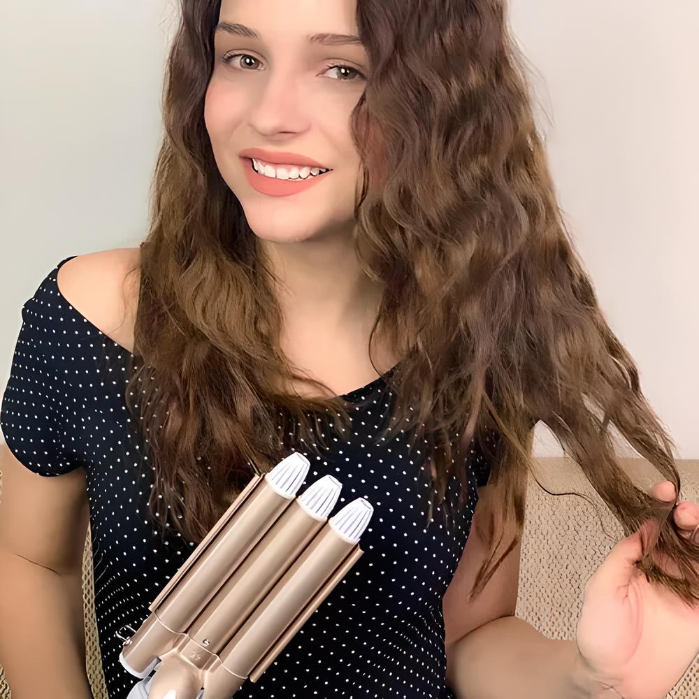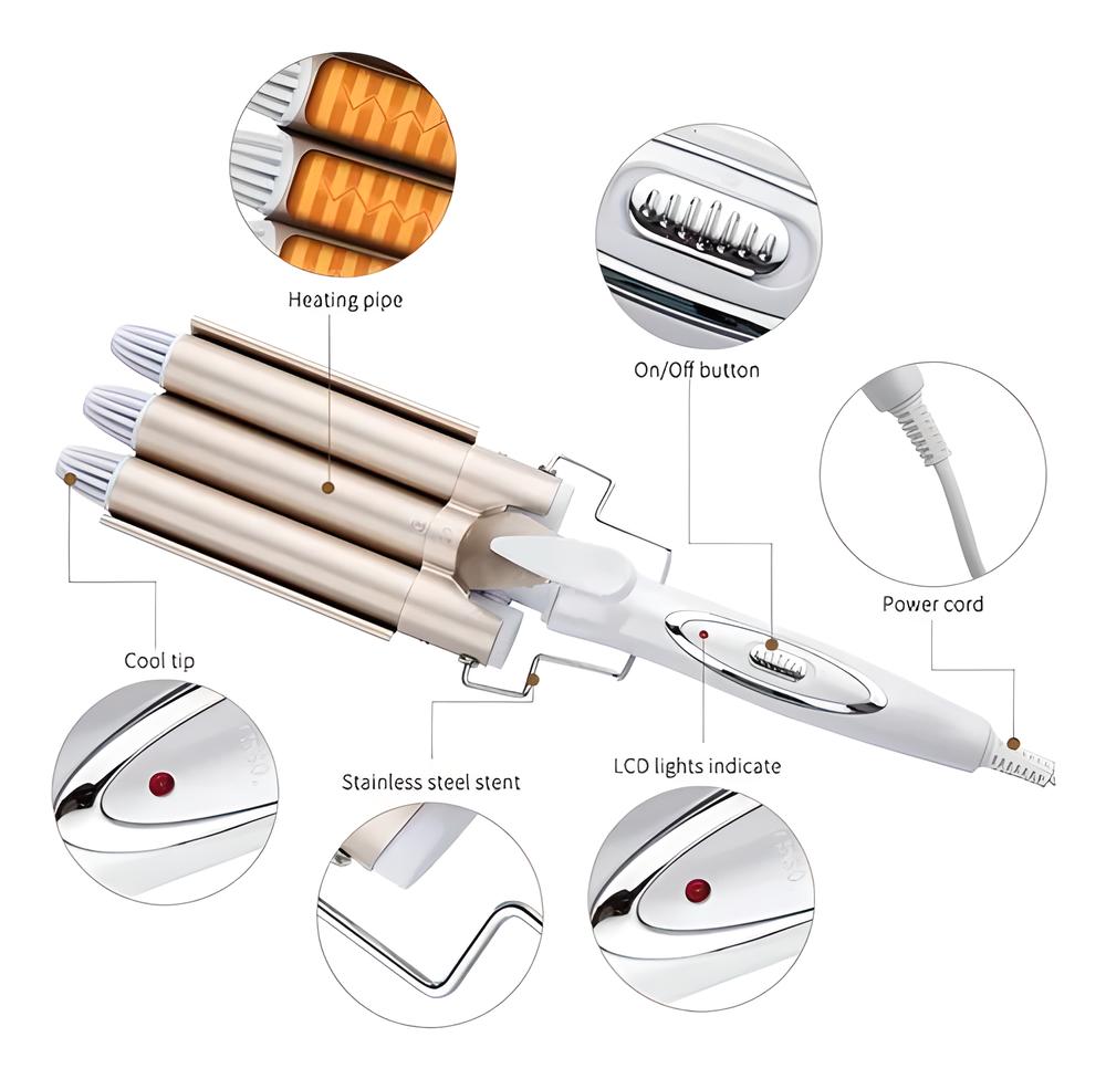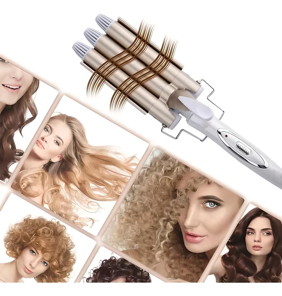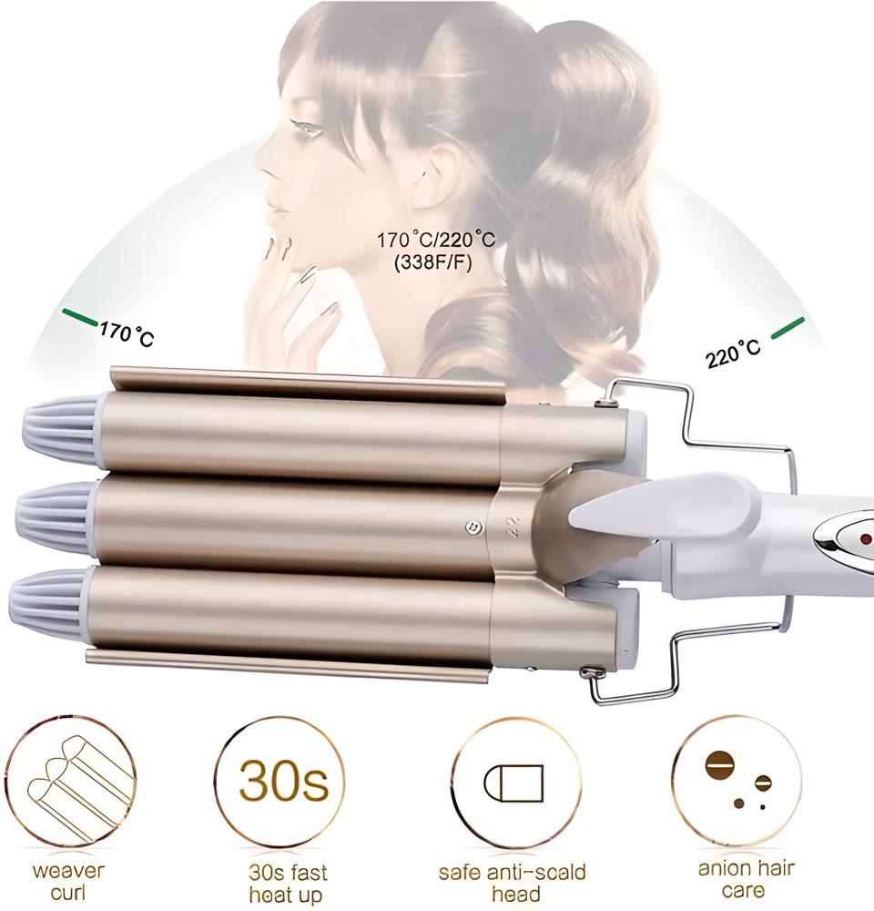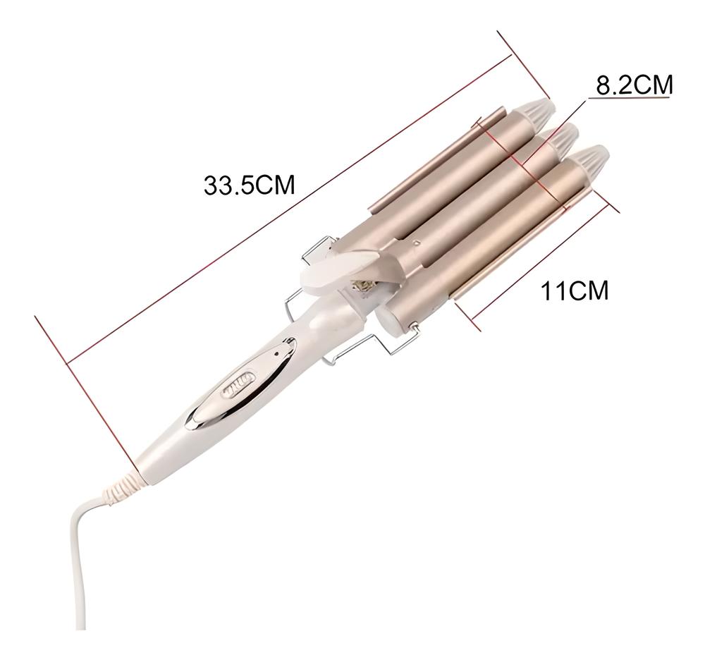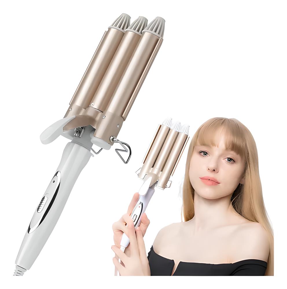 Transforma tu cabello en minutos con ondas suaves y definidas. El rizador con 3 cilindros está diseñado para lograr un look profesional desde casa. Ideal para todo tipo de cabello, su tecnología de calentamiento rápido te permite crear peinados duraderos sin maltratar tu melena. Perfecto para quienes buscan volumen, estilo y un acabado natural.